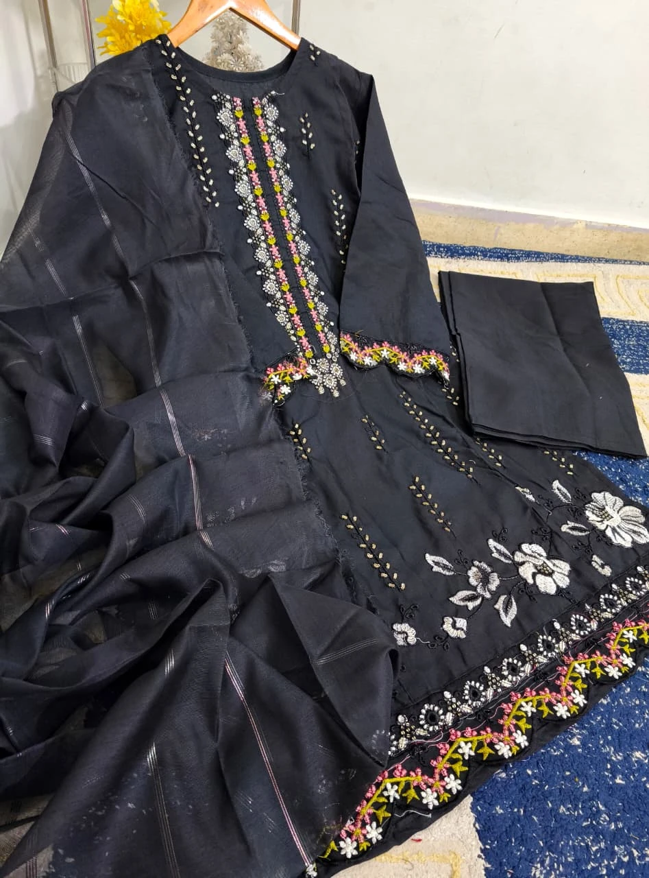 *HEAVY EMBROIDERY THREAD SEQUENCE WORK WITH PATCH WORK DAMAN 3PC COLLECTION*
