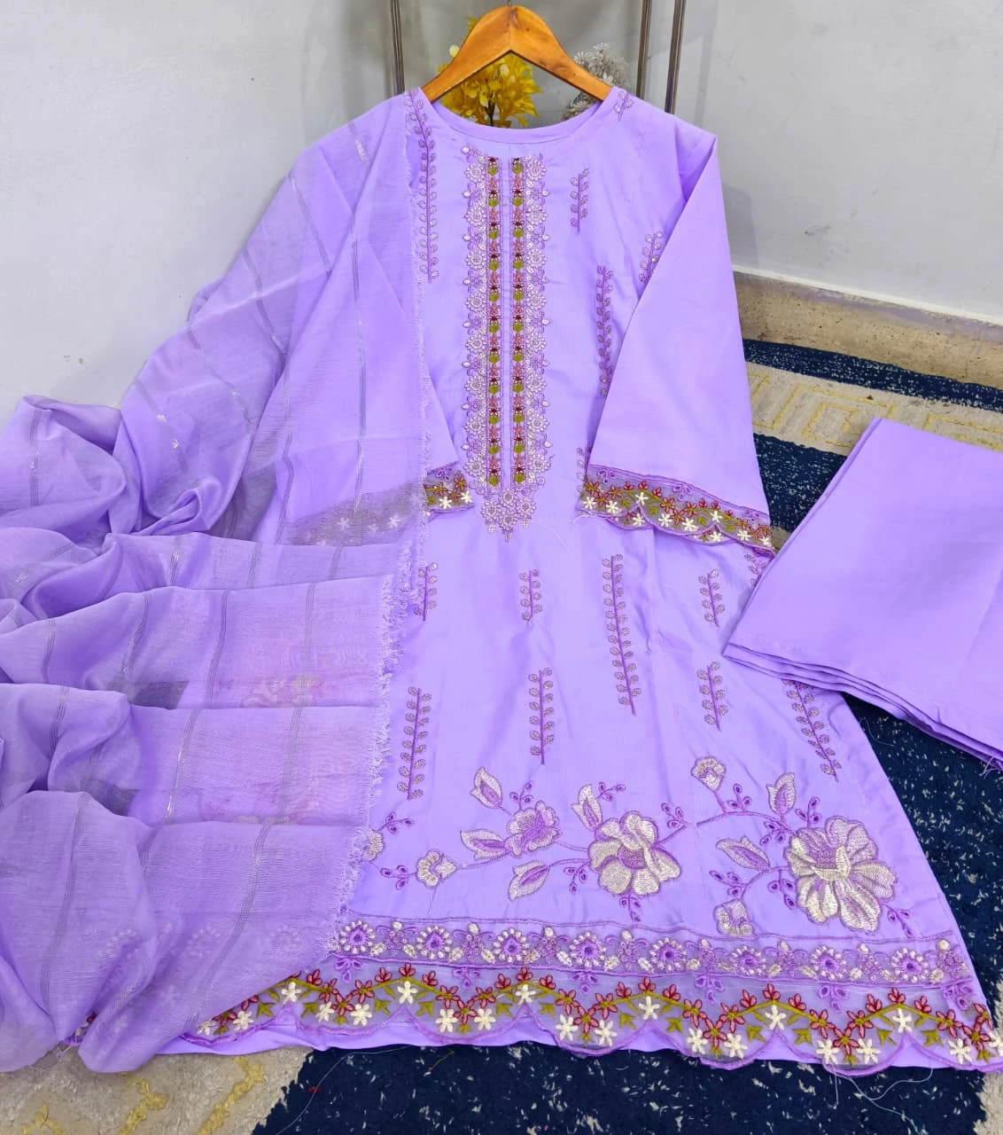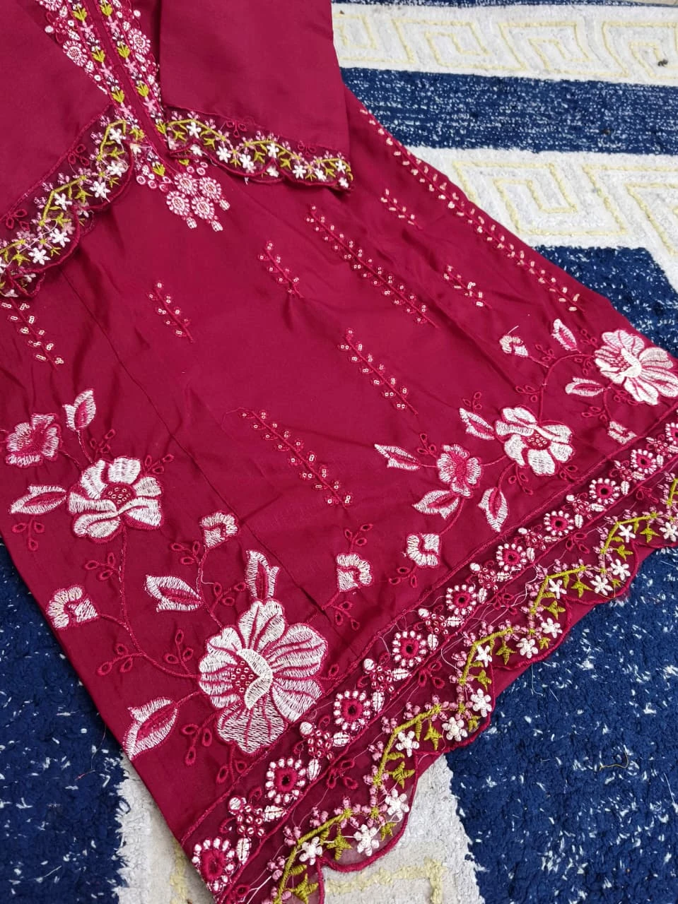 Beautiful Thread Embroidered Patch-Work Daman ✨