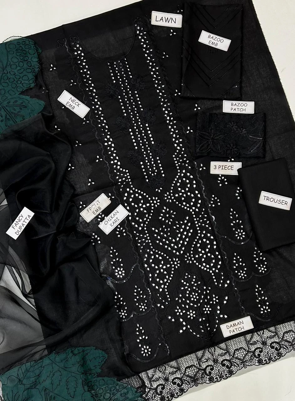 Allover Embroidered Lawn Shirt (Front, Back & Sleeves)
