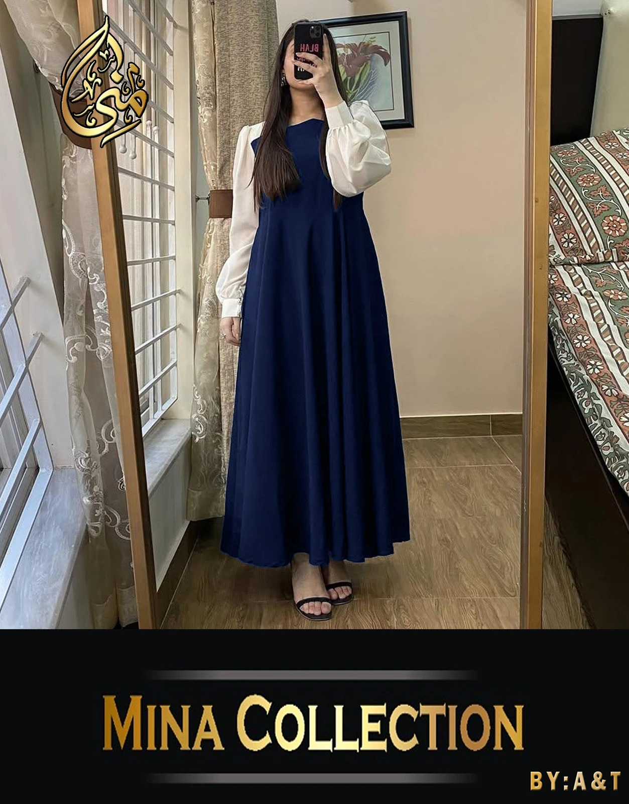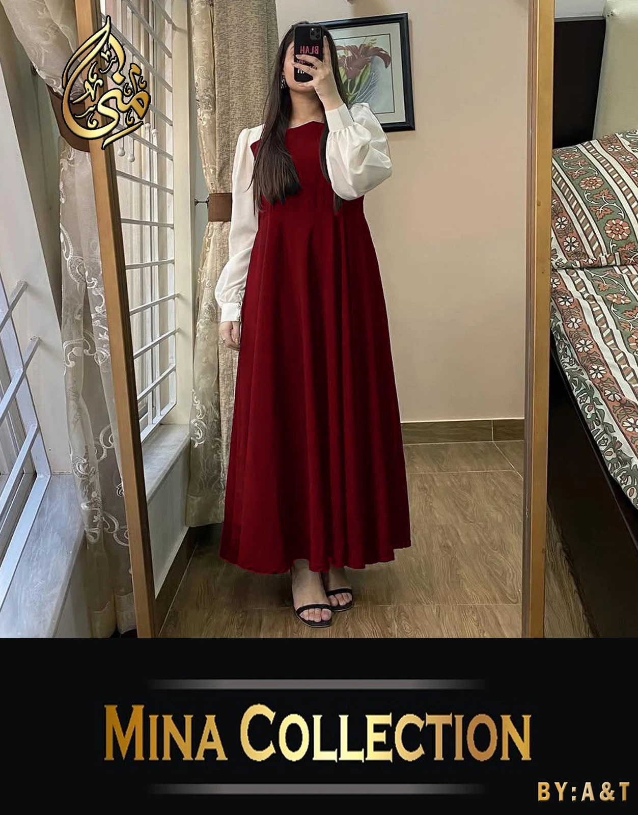 Front And Back Platted Design With White Sleeves Georgette Maxi