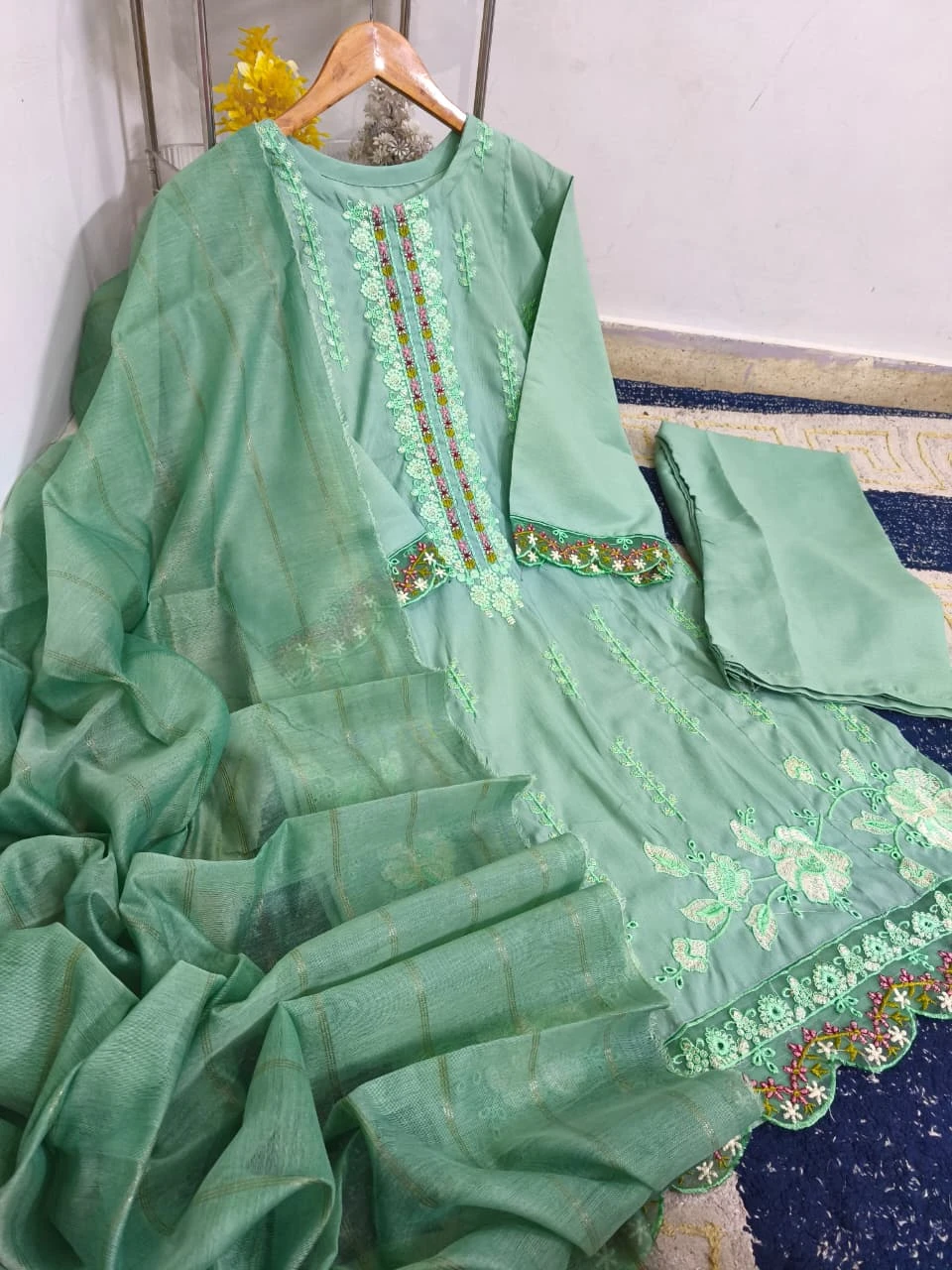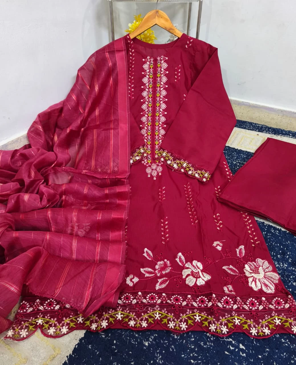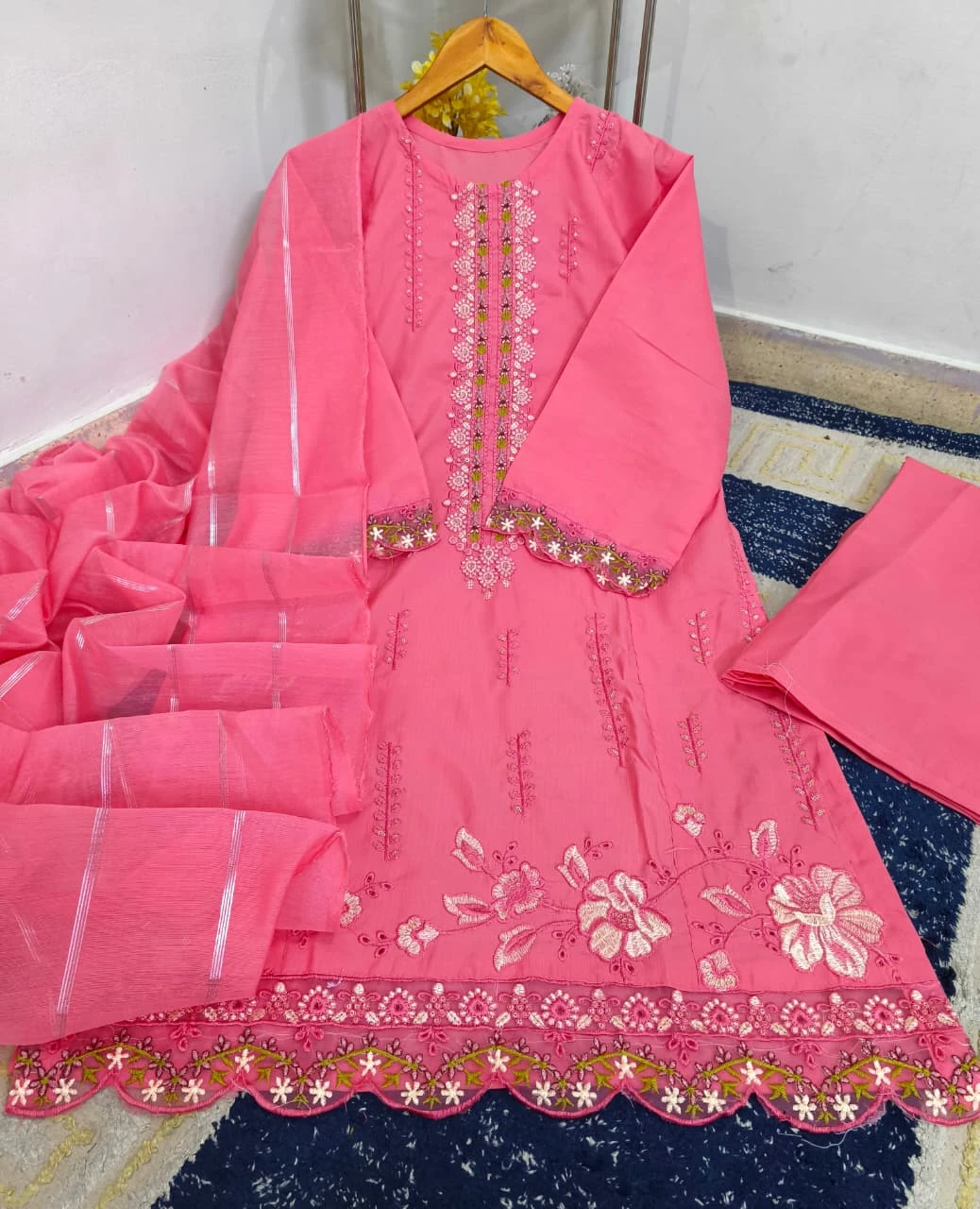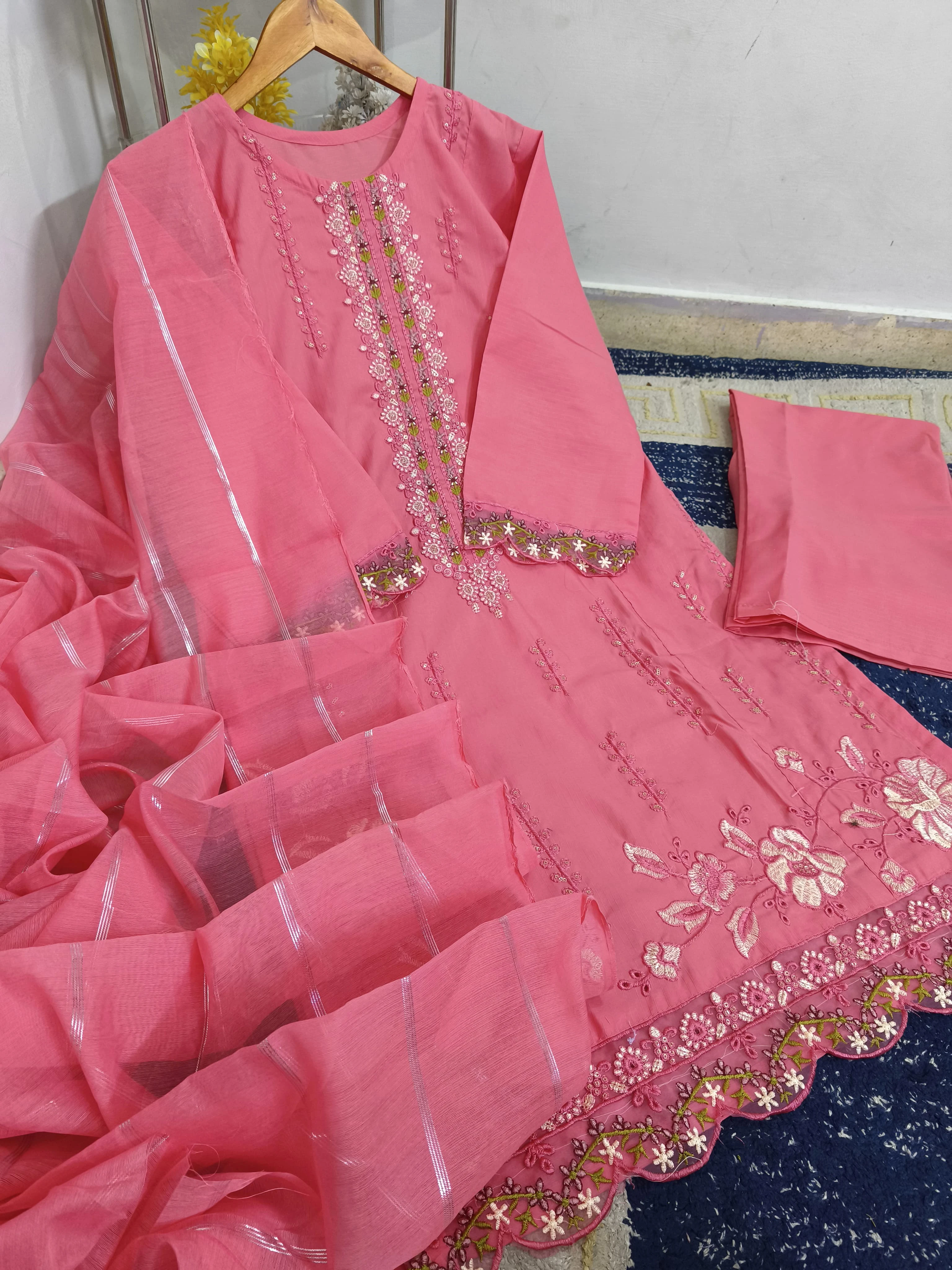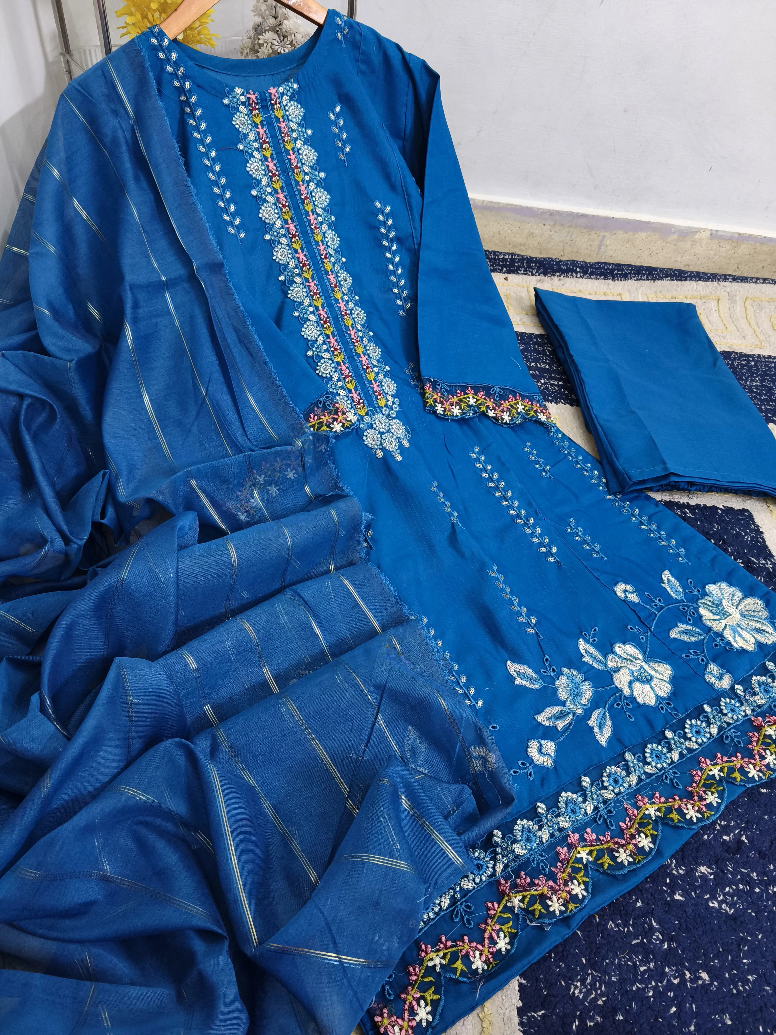 Beautiful Thread Embroidered Patch-Work Daman ✨